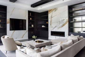 Jasa desain interior membantu memilih material yang sesuai dengan konsep ruang tamu, seperti warna dinding, lantai, dan elemen dekoratif lainnya.
