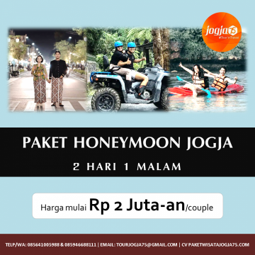 Jogja75 menyediakan paket honeymoon Jogja selama 2 hari 1 malam seperti apa yang kamu inginkan. Mau yang santai dengan menikmati indahnya alam Jogja dengan pasangan tercinta? Atau hanya ingin jalan-jalan traveling dengan pasangan sah? Jogja75 menyediakan paket bulan madu romantis yang bisa kamu kustom sendiri sesuai dengan keinginan, harga murah terjangkau mulai 2 jutaan, serta fasilitas terbaik!