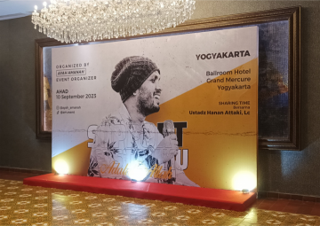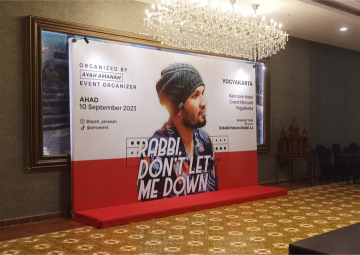 Jasa pembuatan dan pemasangan Backdrop Photobooth Event untuk panggung atau spot foto di Jogja.