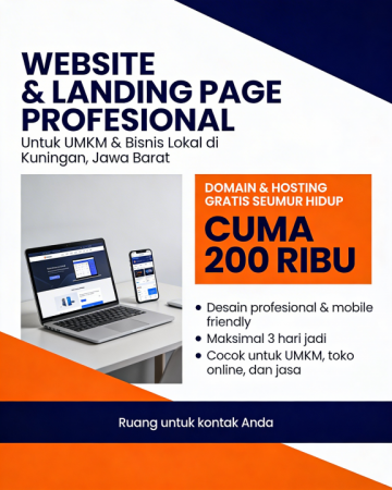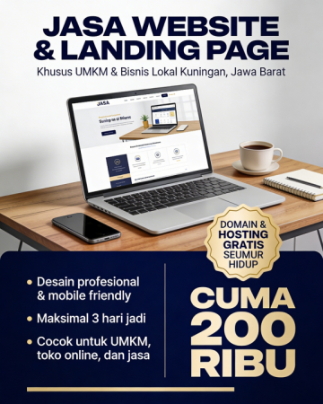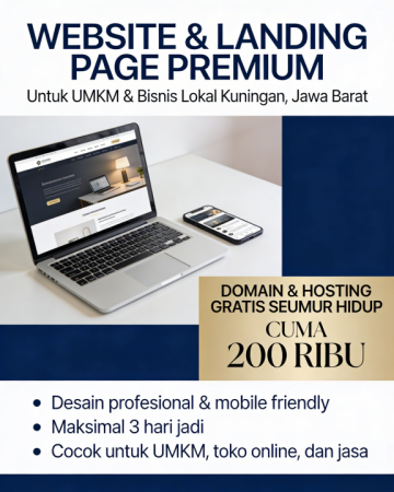 Ingin punya website profesional untuk usaha di Kuningan, Jawa Barat, tapi budget terbatas dan takut ribet urusan teknis? Tenang, sekarang kamu bisa punya website dan landing page rapi, cepat, dan siap dipakai promosi hanya dengan biaya 200 ribu saja, sudah termasuk domain dan hosting gratis seumur hidup. Layanan ini saya buat khusus untuk UMKM, pebisnis lokal, freelancer, dan pelaku usaha rumahan di Kuningan yang ingin mulai serius bangun kehadiran online tanpa pusing soal teknis dan biaya besar.