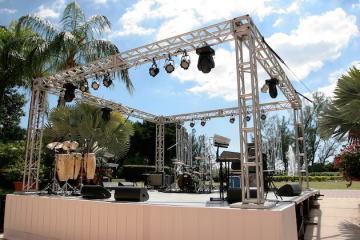 Pernikahan outdoor sering kali memerlukan panggung dengan desain khusus. Panggung rigging outdoor Jogja menyediakan solusi untuk acara pernikahan di luar ruangan yang memerlukan struktur stabil untuk penempatan dekorasi atau tata cahaya.