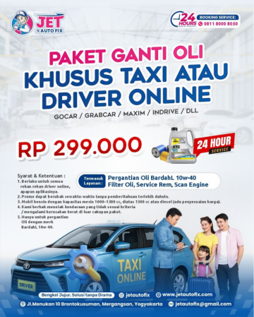 Hubungi kami sekarang, dan jadikan Jet Auto Fix mitra terpercaya Anda dalam menjaga kesehatan serta performa mobil, baik itu matic maupun manual, di seluruh Yogyakarta!